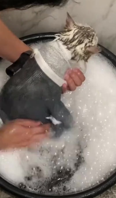 Kattvårdspåse i nät – för bad, kloklippning och pälsvård